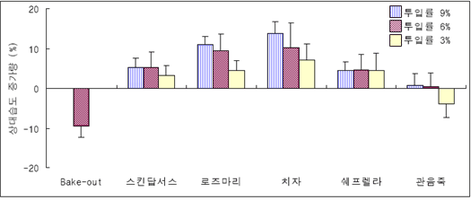 도표. 생활공간에 실내식물 투입률 별 상대습도 증가량