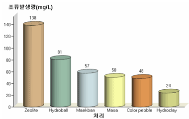 수경상품 이용시 식물체를 지지하는 배지는 주로 맥반석, 옥돌, 하이드로볼 등 다양하게 사용 하이드로볼 등 다양하게 사용되고 있으나 배지 종류에 따른 조류 발생 차이에 관한 구체적인 정보는 없음